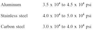 Alternate Values Alternate values are sometimes used instead of yield strength. Several of these are briefly described below. The yield point, determined by the divider method, involves an observer with a pair of dividers watching for visible elongation between two gage marks on the specimen. When visible stretch occurs, the load at that instant is recorded, and the stress corresponding to that load is calculated. Soft steel, when tested in tension, frequently displays a peculiar characteristic, known as a yield point. If the stress-strain curve is plotted, a drop in the load (or sometimes a constant load) is observed although the strain continues to increase. Eventually, the metal is strengthened by the deformation, and the load increases with further straining. The high point on the S-shaped portion of the curve, where yielding began, is known as the upper yield point, and the minimum point is the lower yield point. This phenomenon is very troublesome in certain deep drawing operations of sheet steel. The steel continues to elongate and to become thinner at local areas where the plastic strain initiates, leaving unsightly depressions called stretcher strains or "worms." The proportional limit is defined as the stress at which the stress-strain curve first deviates from a straight line. Below this limiting value of stress, the ratio of stress to strain is constant, and the material is said to obey Hooke's Law (stress is proportional to strain). The proportional limit usually is not used in specifications because the deviation begins so gradually that controversies are sure to arise as to the exact stress at which the line begins to curve. The elastic limit has previously been defined as the stress at which plastic deformation begins. This limit cannot be determined from the stress-strain curve. The method of determining the limit would have to include a succession of slightly increasing loads with intervening complete unloading for the detection of the first plastic deformation or "permanent set." Like the proportional limit, its determination would result in controversy. Elastic limit is used, however, as a descriptive, qualitative term. In many situations, the yield strength is used to identify the allowable stress to which a material can be subjected. For components that have to withstand high pressures, such as those used in pressurized water reactors (PWRs), this criterion is not adequate. To cover these situations, the maximum shear stress theory of failure has been incorporated into the ASME (The American Society of Mechanical Engineers) Boiler and Pressure Vessel Code, Section III, Rules for Construction of Nuclear Pressure Vessels. The maximum shear stress theory of failure was originally proposed for use in the U.S. Naval Reactor Program for PWRs. It will not be discussed in this text.