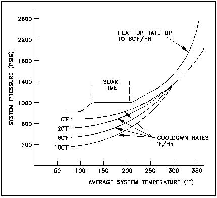 Personnel operating a reactor plant must be aware of the heatup and cooldown rates for the system. If personnel exceed these rates, major damage could occur under certain conditions. EO 1.12 IDENTIFY the basis used for determining heatup and cooldown rate limits. EO 1.13 IDENTIFY the three components that will set limits on the heatup and cooldown rates. EO 1.14 STATE the action typically taken upon discovering the heatup or cooldown rate has been exceeded. EO 1.15 STATE the reason for using soak times. EO 1.16 STATE when soak times become very significant. Basis Heatup and cooldown rate limits, as shown in Figure 6, are based upon the impact on the future fatigue life of the plant. The heatup and cooldown limits ensure that the plant's fatigue life is equal to or greater than the plant's operational life. Large components such as flanges, the reactor vessel head, and even the reactor vessel itself are the limiting components. Usually the most limiting component will set the heatup and cooldown rates. Thermal stress imposed by a rapid temperature change (a fast ramp or even a step change) of approximately 20F (depending upon the plant) is insignificant (106 cycles allowed depending upon component) and has no effect on the design life of the plant.