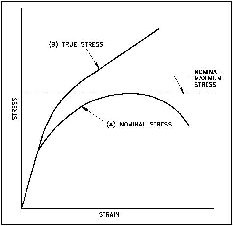 Figure 1 Nominal Stress-Strain Curve vs True Stress-Strain Curve Work hardening can also be used to treat material. Prior work hardening (cold working) causes the treated material to have an apparently higher yield stress. Therefore, the metal is strengthened.