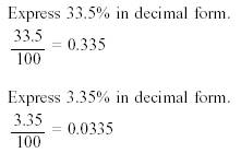 Changing a Percent to a Decimal Any number written as a percent may be written as a decimal. To change a percent to a decimal, drop the percent symbol and divide by 100. Example: