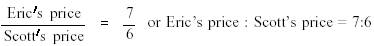 is divided by the amount paid by Scott = Step 2:Simplifying this expression, both 700 and 600 can be divided by 100. Step 3:Expressing this fraction as a ratio: