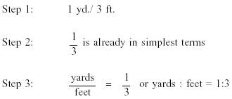 Example: If one yard equals three feet, what is the ratio of yards to feet? Solution: