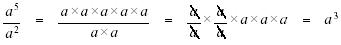 Example: (a2)3 = (a x a) x (a x a) x (a x a) = a6 that is, you multiply (a x a) three times. Similarly, for (am)n, one multiplies (am) n times. There are m values of a in each parenthesis multiplied by n parenthesis or m x n values of a to multiply. Thus, Rule 3: When dividing two exponential numbers, subtract the powers.