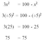 are sometimes indicated by the symbol . Thus, At this point, it should be mentioned that in some cases the result of solving pure quadratic equations is the square root of a negative number. Square roots of negative numbers are called imaginary numbers and will be discussed later in this section. Example: Solve the following quadratic equation by taking the square roots of both sides. 3x2 = 100 - x2 Solution: Step 1.Using the addition axiom, add x2 to both sides of the equation.