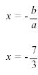 x = 0 and Example: Find the roots of the following quadratic equation. 3x2 + 7x = 0 Solution: Using Equation 2-6, one root is determined. x=0 Using Equation 2-7, substitute the values of a and b and solve for x.