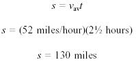 Example 1: How far can a car traveling at a rate of 52 miles per hour travel in 21/2 hours? Solution: Using Equation 2-13: