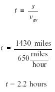 Example 2: How long does it take a plane traveling at 650 miles per hour to go 1430 miles? Solution: Using Equation 2-14:
