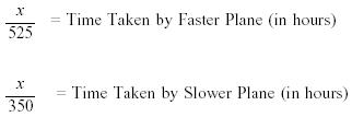 Algebraic word problems involving motion are solved using the general relationship among distance, time, and average velocity following the same five basic steps for solving any algebraic word problem. Example 1: A plane flying at 525 miles per hour completes a trip in 2 hours less than another plane flying at 350 miles per hour. What is the distance traveled? Solution: Step 1.Let x = Distance Traveled (in miles) Step 2.Then, using Equation 2-14,