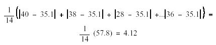 We have discussed the averages and the means of sets of values. While the mean is a useful tool in describing a characteristic of a set of numbers, sometimes it is valuable to obtain information about the mean. There is a second number that indicates how representative the mean is of the data. For example, in the group of numbers, 100, 5, 20, 2, the mean is 31.75. If these data points represent tank levels for four days, the use of the mean level, 31.75, to make a decision using tank usage could be misleading because none of the data points was close to the mean. This spread, or distance, of each data point from the mean is called the variance. The variance of each data point is calculated by: