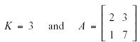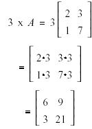 Multiplication of a Scalar and a Matrix When multiplying a matrix by a scalar (or number), we write "scalar K times matrix A." Each element of the matrix is multiplied by the scalar. By example: