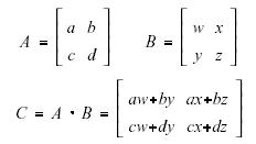 In general terms, a matrix C which is a product of two matrices, A and B, will have elements given by the following.