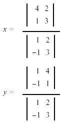 Expanding the top matrix for x using the elements in the bottom row gives: