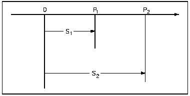 Figure 2 Motion Between Two Points If the time recorded by a clock, when the object is at position P1 is tl, and if the time when the object is at position P2 is t2, then the average velocity of the object between points P1 and P2 equals the distance traveled, divided by the elapsed time.