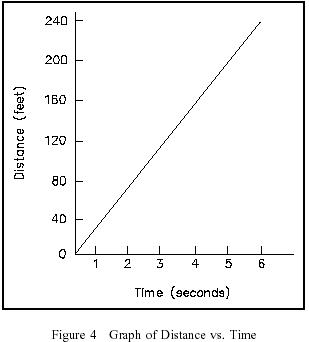 a graph was defined as the change in y, For the case shown in Figure 4, the velocity is constant. Figure 5 is another graph of the distance traveled by an object as a function of the elapsed time. In this case the velocity is not constant. The functional relationship shown is given by the following equation: