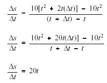 The instantaneous velocity v, which is the velocity at a given instant of time, equals the derivative of the distance traveled with respect to time, ds/dt. It is the rate of change of s with respect to t. The value of the derivative ds/dt for the case plotted in Figure 4 can be understood by considering small changes in the two variables s and t.