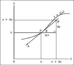 Figure 6 Slope of a Curve curve y = f(x) at point P. The tangent line has the slope of the curve dy/dx, where, These applications suggest that a derivative can be visualized as the slope of a graphical plot. A derivative represents the rate of change of one quantity with respect to another. When the relationship between these two quantities is presented in graphical form, this rate of change equals the slope of the resulting plot. The mathematics of dynamic systems involves many different operations with the derivatives of functions. In practice, derivatives of functions are not determined by plotting the functions and finding the slopes of tangent lines. Although this approach could be used, techniques have been developed that permit derivatives of functions to be determined directly based on the form of the functions. For example, the derivative of the function f(x) = c, where c is a constant, is zero. The graph of a constant function is a horizontal line, and the slope of a horizontal line is zero.