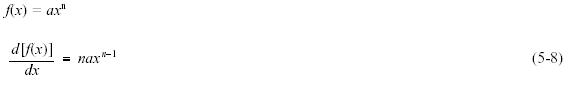 The derivative of the function f(x) = axn where a and n are constants, is naxn-1.