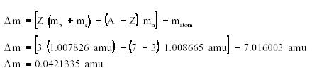 Example: Calculate the mass defect for lithium-7. The mass of lithium-7 is 7.016003 amu. Solution:
