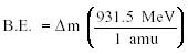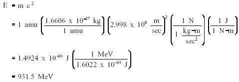 Since 1 amu is equivalent to 931.5 MeV of energy, the binding energy can be calculated using Equation (1-2).