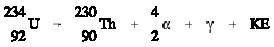 (Thorium-230) and the a particle is designated as KE. The sum of the KE and the