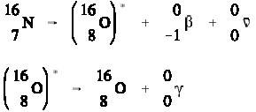 Figure 9 Orbital Electron Capture Electron capture and positron emission result in the production of the same daughter product, and they exist as competing processes. For positron emission to occur, however, the mass of the daughter product must be less than the mass of the parent by an amount equal to at least twice the mass of an electron. This mass difference between the parent and daughter is necessary to account for two items present in the parent but not in the daughter. One item is the positron ejected from the nucleus of the parent. The other item is that the daughter product has one less orbital electron than the parent. If this requirement is not met, then orbital electron capture takes place exclusively. Gamma Emission ( Gamma radiation is a high-energy electromagnetic radiation that originates in the nucleus. It is emitted in the form of photons, discrete bundles of energy that have both wave and particle properties. Often a daughter nuclide is left in an excited state after a radioactive parent nucleus undergoes a transformation by alpha decay, beta decay, or electron capture. The nucleus will drop to the ground state by the emission of gamma radiation. The usual method for an excited nucleus to go from the excited state to the ground state is by emission of gamma radiation. However, in some cases the gamma ray (photon) emerges from the nucleus only to interact with one of the innermost orbital electrons and, as a result, the energy of the photon is transferred to the electron. The gamma ray is then said to have undergone internal conversion. The conversion electron is ejected from the atom with kinetic energy equal to the gamma energy minus the binding energy of the orbital electron. An orbital electron then drops to a lower energy state to fill the vacancy, and this is accompanied by the emission of characteristic x-rays. Isomers and Isomeric Transition Isomeric transition commonly occurs immediately after particle emission; however, the nucleus may remain in an excited state for a measurable period of time before dropping to the ground state at its own characteristic rate. A nucleus that remains in such an excited state is known as a nuclear isomer because it differs in energy and behavior from other nuclei with the same atomic number and mass number. The decay of an excited nuclear isomer to a lower energy level is called an isomeric transition. It is also possible for the excited isomer to decay by some alternate means, for example, by beta emission. An example of gamma emission accompanying particle emission is illustrated by the decay of nitrogen-16 below.