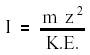 where: I is the ionizing power m is the mass of the particle z is the number of unit charges it carries K.E. is its kinetic energy Since m for an alpha particle is about 7300 times as large as m for a beta particle, and z is twice as great, an alpha will produce much more ionization per unit path length than a beta particle of the same energy. This phenomenon occurs because the larger alpha particle moves slower for a given energy and thus acts on a given electron for a longer time. |
