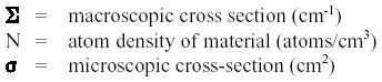 is called the microscopic cross section ( Because the microscopic cross section is an area, it is expressed in units of area, or square centimeters. A square centimeter is tremendously large in comparison to the effective area of a nucleus, and it has been suggested that a physicist once referred to the measure of a square centimeter as being "as big as a barn" when applied to nuclear processes. The name has persisted and microscopic cross sections are expressed in terms of barns. The relationship between barns and cm2 is shown below. 1 barn = 10-24 cm2 Whether