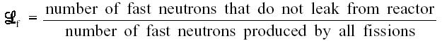 fast non-leakage probability ( Six Factor Formula With the inclusion of these last two factors it is possible to determine the fraction of neutrons that remain after every possible process in a nuclear reactor. The effective multiplication factor (keff ) can then be determined by the product of six terms.