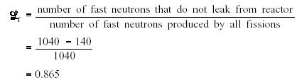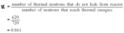 represented by the quantity Next, it can be seen that 140 neutrons leak from the core before reaching the thermal energy range. The fast non-leakage probability is calculated from its definition, as shown below.