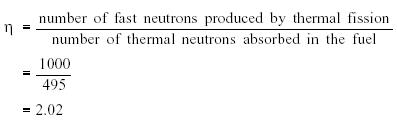 The final factor numerically describes the production of fission neutrons resulting from thermal neutrons being absorbed in the fuel. This factor is called the reproduction factor (Tj). The value for the reproduction factor can be determined as shown below.