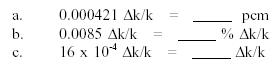 reactivity that is used at some reactors is equivalent to 10-4 Example: Convert the values of reactivity listed below to the indicated units. Solution: