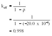 If the reactivity is known, the effective multiplication factor can be determined by solving Equation (3-5) for keff in terms of the reactivity. This results in the following relationship. kef _