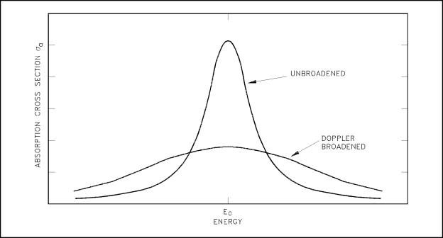 Temperature Coefficient The change in reactivity per degree change in temperature is called the temperature coefficient of reactivity. Because different materials in the reactor have different reactivity changes with temperature and the various materials are at different temperatures during reactor operation, several different temperature coefficients are used. Usually, the two dominant temperature coefficients are the moderator temperature coefficient and the fuel temperature coefficient. The change in reactivity per degree change in moderator temperature is called the moderator temperature coefficient of reactivity. The magnitude and sign (+ or -) of the moderator temperature coefficient is primarily a function of the moderator-to-fuel ratio. If a reactor is under moderated, it will have a negative moderator temperature coefficient. If a reactor is over moderated, it will have a positive moderator temperature coefficient. A negative moderator temperature coefficient is desirable because of its self-regulating effect. For example, an increase in reactivity causes the reactor to produce more power. This raises the temperature of the core and adds negative reactivity, which slows down, or turns, the power rise. Fuel Temperature Coefficient Another temperature coefficient of reactivity, the fuel temperature coefficient, has a greater effect than the moderator temperature coefficient for some reactors. The fuel temperature coefficient is the change in reactivity per degree change in fuel temperature. This coefficient is also called the "prompt" temperature coefficient because an increase in reactor power causes an immediate change in fuel temperature. A negative fuel temperature coefficient is generally considered to be even more important than a negative moderator temperature coefficient because fuel temperature immediately increases following an increase in reactor power. The time for heat to be transferred to the moderator is measured in seconds. In the event of a large positive reactivity insertion, the moderator temperature cannot turn the power rise for several seconds, whereas the fuel temperature coefficient starts adding negative reactivity immediately. Another name applied to the fuel temperature coefficient of reactivity is the fuel doppler reactivity coefficient. This name is applied because in typical low enrichment, light watermoderated, thermal reactors the fuel temperature coefficient of reactivity is negative and is the result of the doppler effect, also called doppler broadening. The phenomenon of the doppler effect is caused by an apparent broadening of the resonances due to thermal motion of nuclei as illustrated in Figure 3. Stationary nuclei absorb only neutrons of energy Eo. If the nucleus is moving away from the neutron, the velocity (and energy) of the neutron must be greater than Eo to undergo resonance absorption. Likewise, if the nucleus is moving toward the neutron, the neutron needs less energy than Eo to be absorbed. Raising the temperature causes the nuclei to vibrate more rapidly within their lattice structures, effectively broadening the energy range of neutrons that may be resonantly absorbed in the fuel. Two nuclides present in large amounts in the fuel of some reactors with large resonant peaks that dominate the doppler effect are uranium-238 and plutonium-240.