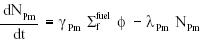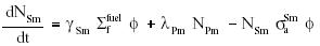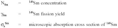 The rate of samarium-149 formation is described as follows. Rate of change of 149SM = yield from fission + 149Pmdecay - 149Sm burnup therefore: