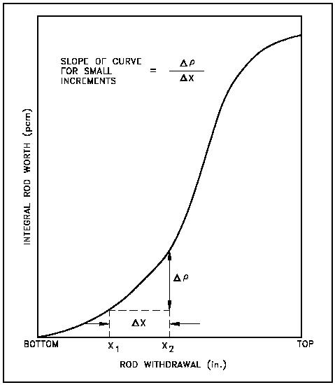 and Differential Control Rod Worth The exact effect of control rods on reactivity can be determined experimentally. For example, a control rod can be withdrawn in small increments, such as 0.5 inch, and the change in reactivity can be determined following each increment of withdrawal. By plotting the resulting reactivity versus the rod position, a graph similar to Figure 9 is obtained. The graph depicts integral control rod worth over the full range of withdrawal. The integral control rod worth is the total reactivity worth of the rod at that particular degree of withdrawal and is usually defined to be the greatest when the rod is fully withdrawn.