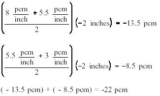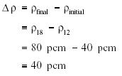 This is negative because the rod was inserted. Method 2. Using the central value of rod position at 8 inches yields an average rod worth of 5.5 pcm/inch. Multiplying by the 4 inches of rod travel yields the answer. (5.5 pcm/in.)(4 in.) = -22 pcm Method 3. Breaking the rod travel total into two parts (10 inches to 8 inches and 8 inches to 6 inches) yields: