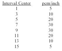 Example 2: Using the differential rod worth curve provided in Figure 11, calculate the reactivity inserted by moving the rod from 10 inches withdrawn to 6 inches withdrawn. Solution: The solution is basically given by the area under the curve for the interval. The answers obtained in the following approximation may vary slightly depending upon the degree of approximation. Method 1. Treating the range from 10 inches to 6 inches as a trapezoid, that is, taking the end values of pcm/inch and multiplying their average by the 4 inches moved yields the following.