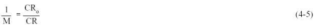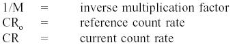 As control rods are withdrawn and keff f approaches one and M approaches infinity, 1/M approaches zero. For a critical reactor, 1/M is equal to zero. A true 1/M plot requires knowledge of the neutron source strength. Because the actual source strength is usually unknown, a reference count rate is substituted, and the calculation of the factor 1/M is through the use of Equation (4-5). where: