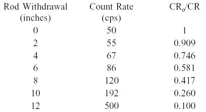 Solution: Step 1:Calculate 1/M for each of the rod positions using equation (4-5). The reference count rate is 50 cps at a rod position of zero.