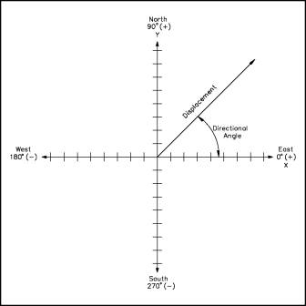 Figure 5 Display Vectors Graphically - Direction Because the x- and y-axes define direction, conventional directional coordinates and degrees may also be used to identify the x- and y-axes (see Figures 6 and 7).