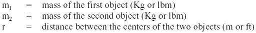 where: F = force of attraction (Newton = 1Kg-m/sec2 or lbf) G =
