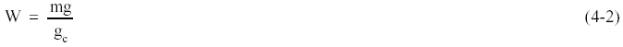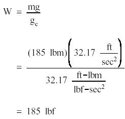 Note that g,, has the same numerical value as the acceleration of gravity at sea level. The mass of a body is the same wherever the body is, whether on the moon or on the earth. The weight of a body, however, depends upon the local acceleration of gravity. Thus, the weight of an object is less on the moon than on the earth because the local acceleration of gravity is less on the moon than on the earth. Example: Calculate the weight of a person with a mass of 185 lbm. W = mg