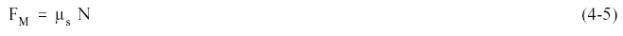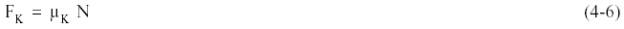 Figure 9 Frictional Forces If the force P is increased, the friction force F also increases, continuing to oppose P, until its magnitude reaches a certain maximum value FM (see part (c) of Figure 9). If P is further increased, the friction force cannot balance it any more, and the block starts sliding. As soon as the block has been set in motion, the magnitude of F drops from FM to a lower value FK.This is because there is less interpenetration between the irregularities of the surfaces in contact when these surfaces move with respect to one another. From then on, the block keeps sliding with increasing velocity (i.e., it accelerates) while the friction force, denoted by FK and called the kinetic-friction force, remains approximately constant. Experimental evidence shows that the maximum value FM of the static-friction force is proportional to the normal component N of the reaction of the surface, as shown in Equation 4-5.
