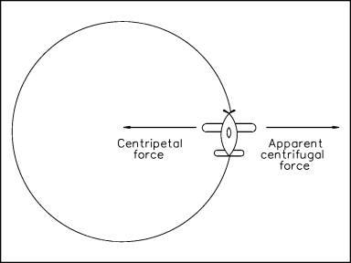 centrifugal force, seems to pull the plane away from the center shown in Figure