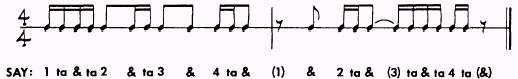 Figure B.2: The Divided Beat in Simple Time. ETB -1 Say "Ta" on any portion of the subdivided beat that is not the beat (number) or divided beat (and)