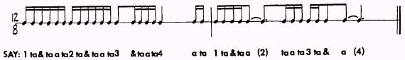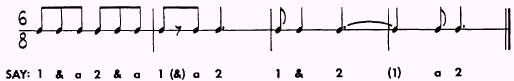 Figure B.5: The Divided Beat in Compound Time Say "Ta" on any portion of the subdivided beat that is not the beat (number) or divided beat (and or a).