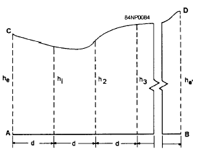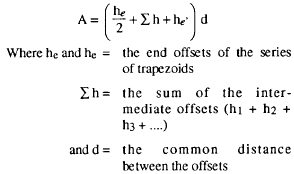 Figure 1-16.-Irregular area by trapezoidal rule. distances between offsets. The formula in computing the total area is as follows: