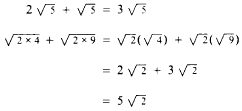 Like fractions, radicals can be added or sub-tracted only if they are similar. Examples: