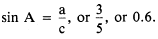 A table of natural functions tells you that an angle with sine 0.6 measures (to the nearest minute) 3652'. Suppose that, instead of knowing the length of a, you know the length of b (4.00 ft). Side b is the side adjacent to angle A. You know that