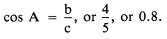 A table of natural functions tells you that an angle with cosine 0.8 measures 3652'. If you know the size of one of the acute angles in a right triangle and the length of the side opposite, you can determine the length of the hypotenuse from the sine of the angle. Suppose that for the triangle shown in figure 1-23, you know that angle A = 3652' and side a = 3.00 ft.